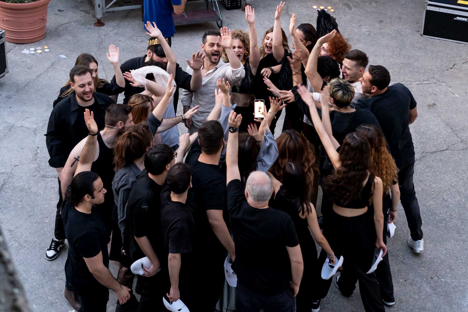 I protagonisti del lungometraggio sono Gabriele Russo (Prometeo) e Domenico Buonanno (Ermes), che avrebbero dovuto mettere in atto l’opera come spettacolo teatrale nella primavera 2020, ma la pandemia bloccò tutto: fu lì che, approfittando delle prime aperture che ancora osteggiavano i lavori teatrali ma non le produzioni videografiche, Russo decise di convertire l’opera, da lui adattata, in un lungometraggio.